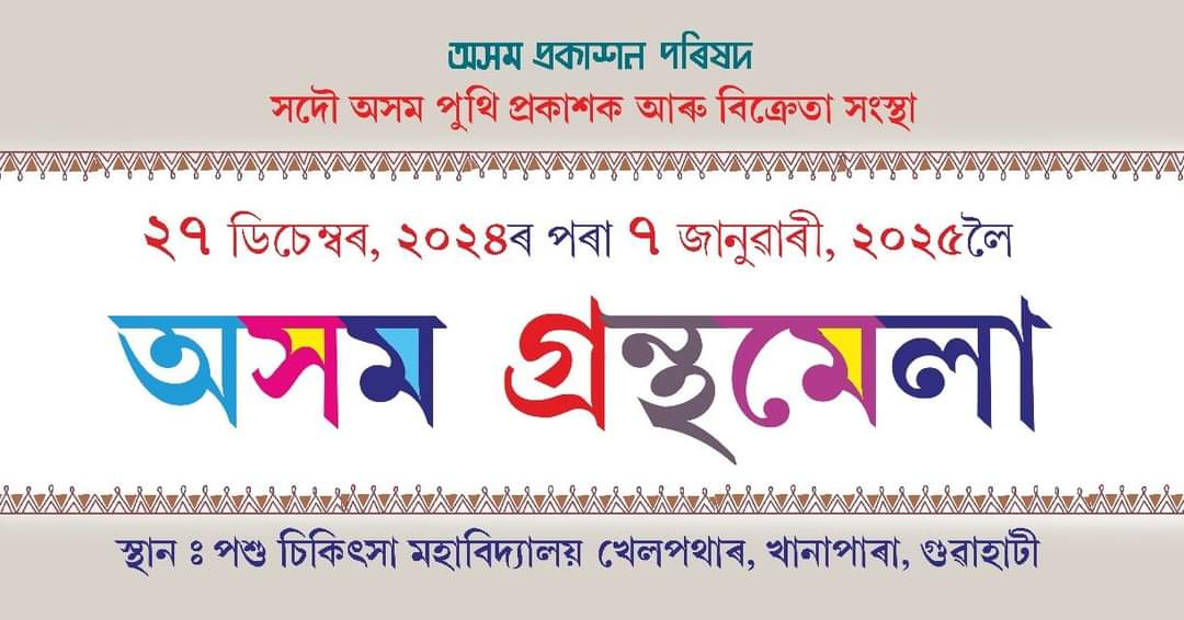 অহা ২৭ ডিচেম্বৰ,২০২৪ৰ পৰা ৭ জানুৱাৰী,২০২৫লৈ গুৱাহাটীৰ খানাপাৰাস্থিত পশু চিকিৎসা মহাবিদ্যালয় খেলপথাৰত অনুষ্ঠিত হ’ব অসমবাসীৰ হেঁপাহৰ গ্ৰন্থ উৎসৱ ‘অসম গ্ৰন্থমেলা’।