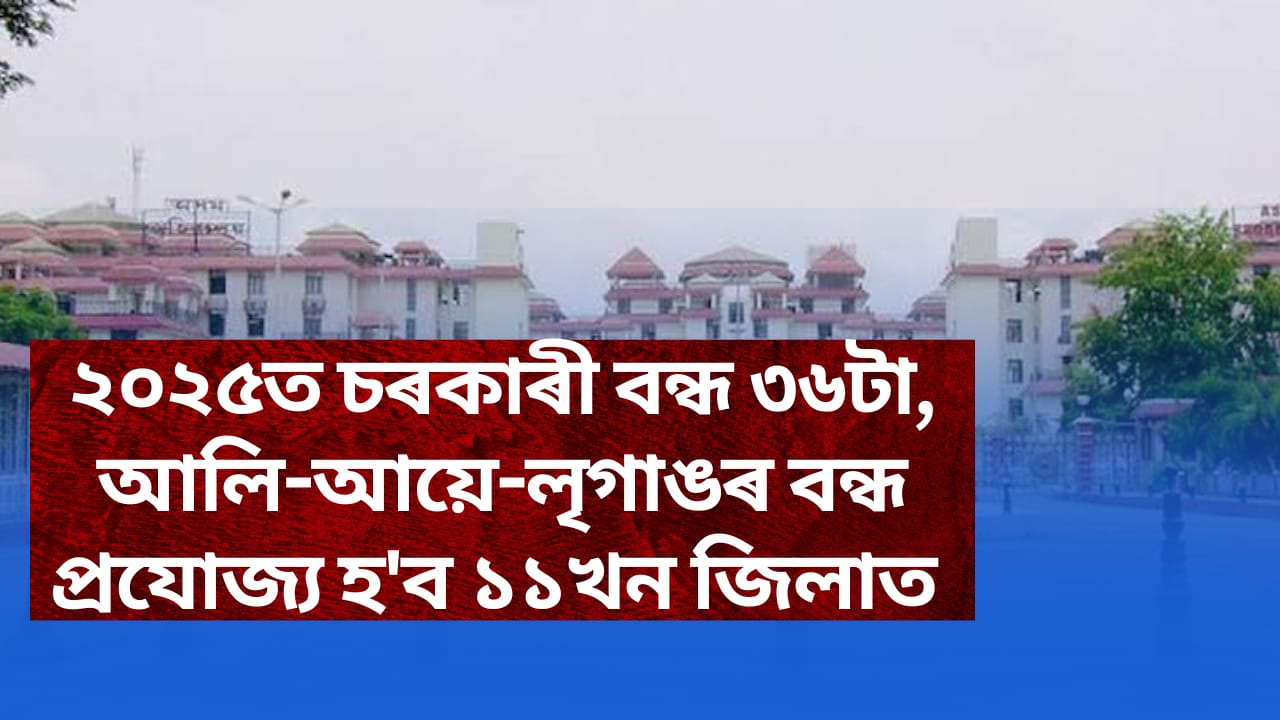 ২০২৫ত চৰকাৰী বন্ধ ৩৬টা, আলি-আয়ে-লৃগাঙৰ বন্ধ প্ৰযোজ্য হ’ব ১১খন জিলাত