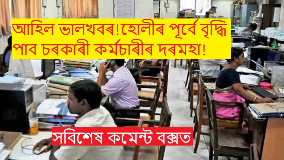 যদি কেন্দ্ৰীয় চৰকাৰে হোলীৰ পূৰ্বেই কৰ্মচাৰীৰ ডিএ বৃদ্ধিৰ কথা ঘোষণা কৰে তেন্তে অসম চৰকাৰেও ৰাজ্যিক কৰ্মচাৰীৰ ডিএ বৃদ্ধিৰ ঘোষণা হোলীৰ আগে পিছে কৰিব পাৰে।
