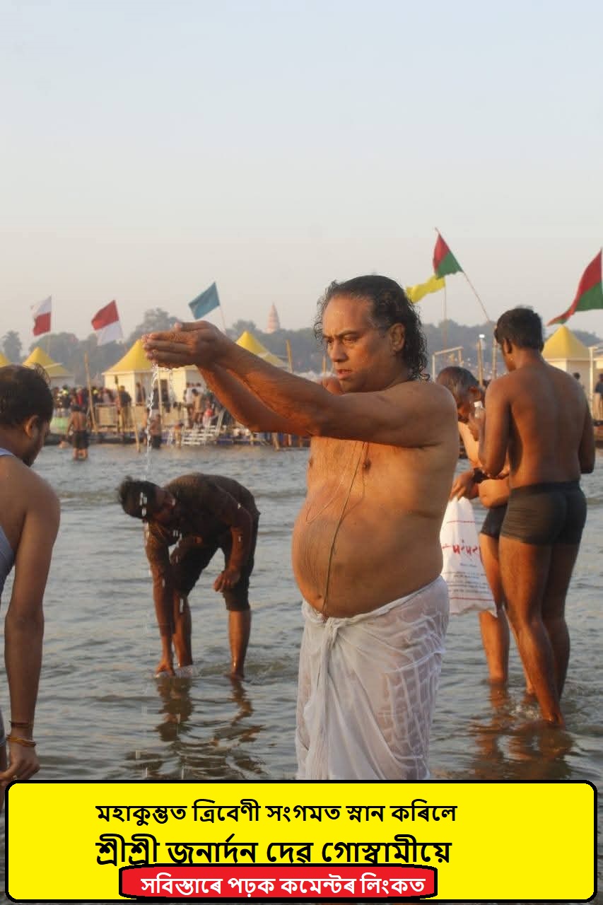 মহাকুম্ভৰ ত্ৰিবেণী সংগমত অসমবাসীৰ মংগলাৰ্থে স্নান কৰিলে মাজুলীৰ উত্তৰ কমলাবাৰী সত্ৰৰ সত্ৰাধিকাৰ শ্ৰীশ্ৰী জনাৰ্দন দেৱ গোস্বামীয়ে।